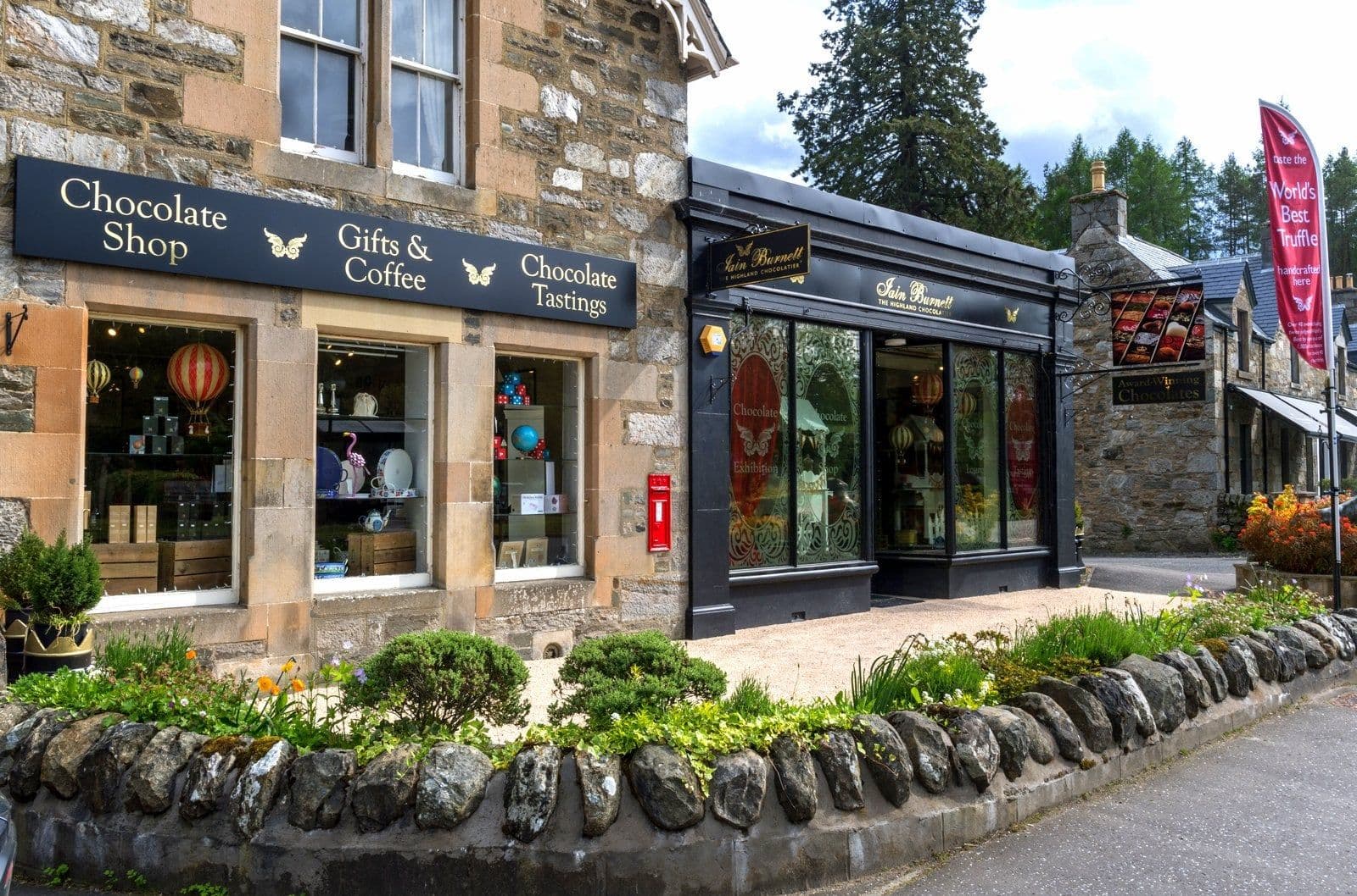 Un'attrazione turistica a 4 stelle e il paradiso del cioccolato in un ambiente magico a soli 5 minuti dalla A9. Curiosate tra i negozi di cioccolato e di souvenir, godetevi una degustazione guidata di cioccolato e imparate a conoscere il mondo del cioccolato gourmet. Fate un viaggio attraverso la storia del cioccolato, i metodi di lavorazione del cacao e fatti poco noti sul cioccolato nella piccola mostra multimediale sul cioccolato. Rilassatevi nella Chocolate Lounge con la vostra selezione personale di deliziosi cioccolatini, la premiata cioccolata calda, il tè, il caffè e la torta e terminate con una passeggiata lungo il bellissimo fiume Tay.